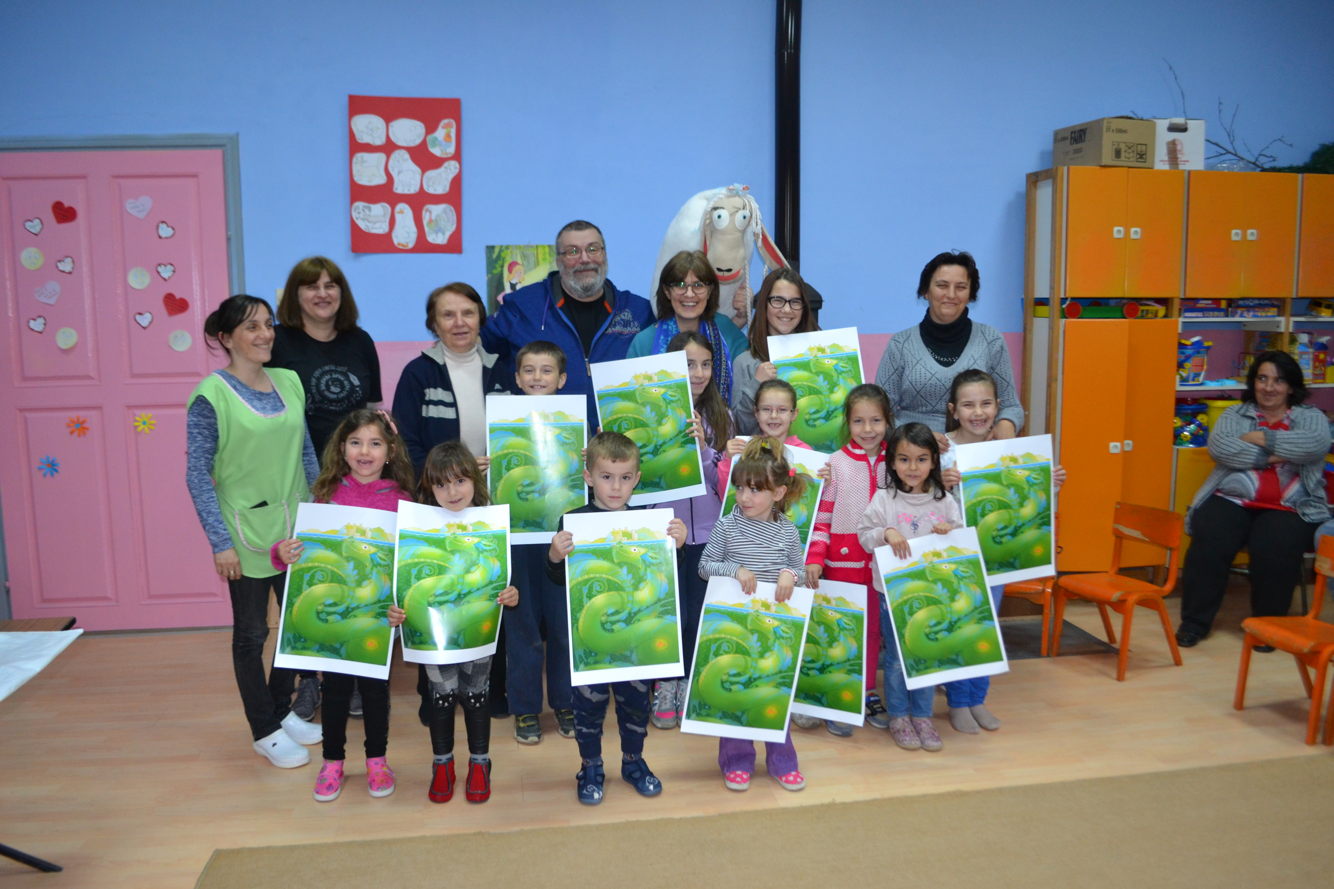 Овог, двадесетог новембра, имала сам пуне руке посла! У Друштвеном клубу Дома културе требало је припремити све за промоцију још једне нове сликовнице за вас. Од прошле године моја библиотека издаје посебну књигу којом ће свет детињства учинити још интересантнијим. Ове године у питању је била сликовница „Четири патуљка“, писца за децу Владимира Андрића.