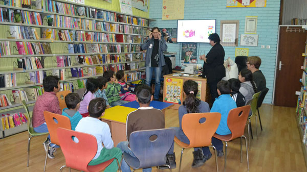 Таман смо се вратили из Подвиса и Васиља, кад, у Дечје одељење пристиже весела дружина девојчица и дечака из школе „Каплар“, предвођена педагошким асистентом Маријом Симић. Био је то ванредан сусрет редовног програма „Мачке перу веш“, који је намењен ромској деци и прилика да малишани упознају „главом и брадом“ правог-правцатог писца.