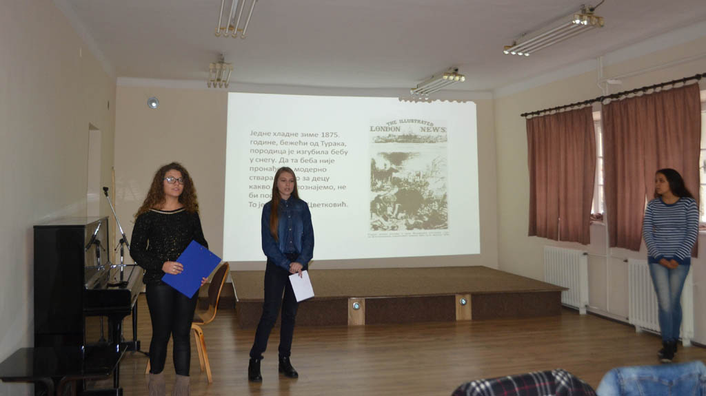 Данашњи четвртак провела сам са осмехом на лицу. Са својим другарицама новинаркама из удобности библиотеке отишла сам до Техничке школе и поносно присуствавала њиховој презентацији о Брани Цветковићу, чувеном писцу за децу, карикатуристи, приповедачу, глумцу, редитељу, сатиричном писцу.