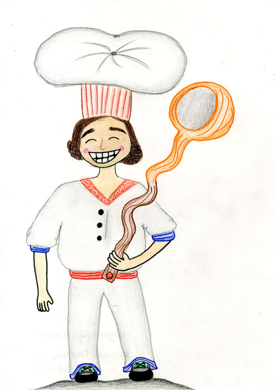 Ауторка показује варјачу, куварску капу и белу кецељу.