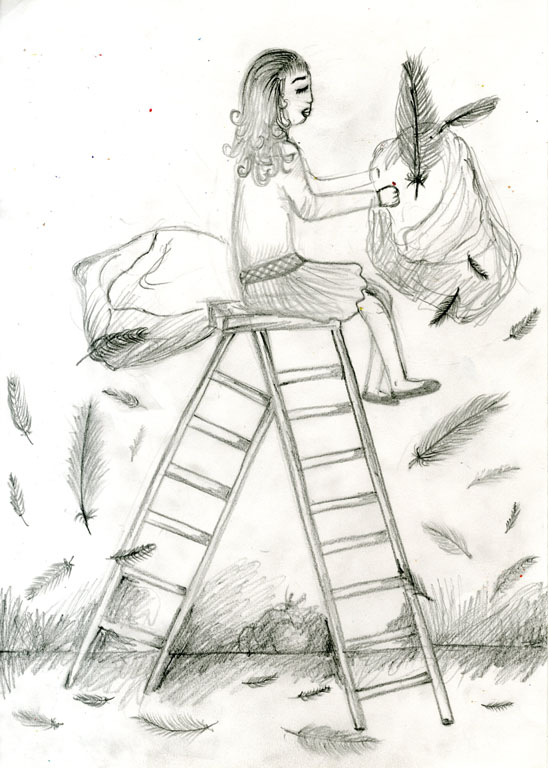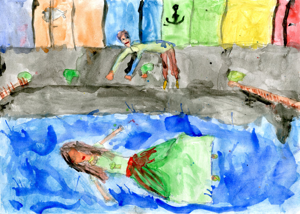 Ауторка Нарциси ставља поштанску капу и торбу, и дода фењер који виси на штапу за пецање. Нарциса није начисто јесу ли је прешли, али „леже на руду“.