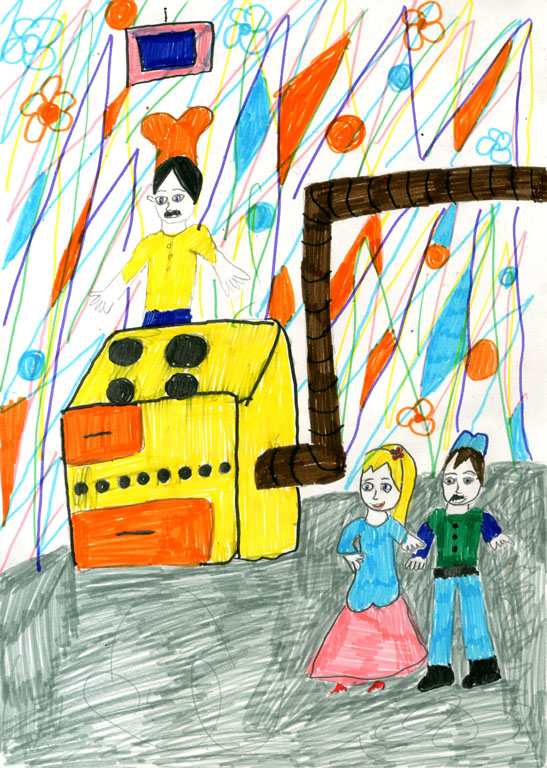 (ЕТИДА 5: ансамбл мисли да је нестало струје, свако смисли реакцију и реплику карактеристичну за лик.)
